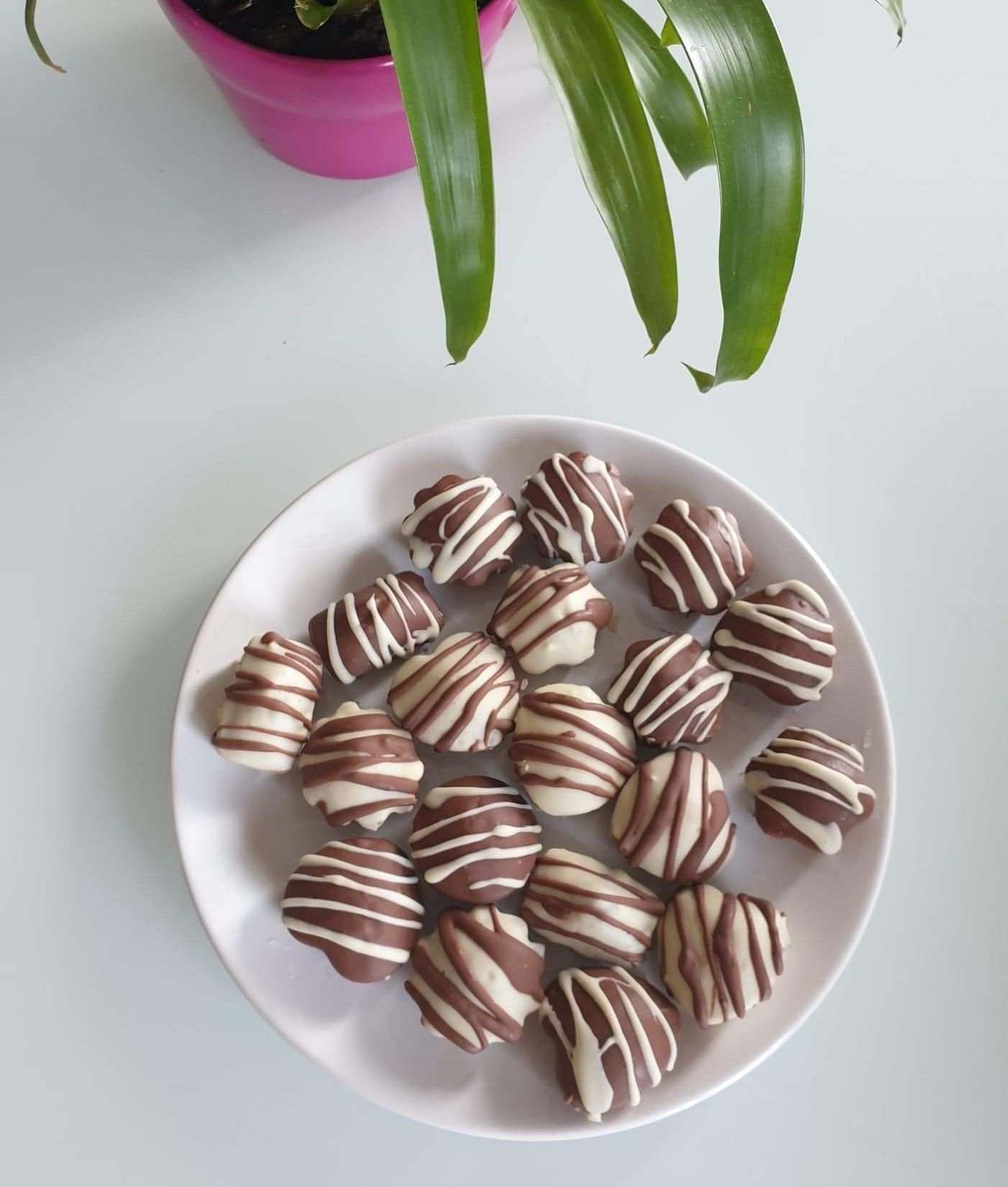 - Une fois trempé dans le chocolat les mettre sur une grill puis au frigo pour que le chocolat fige. Puis décorer avec le reste de chocolat.