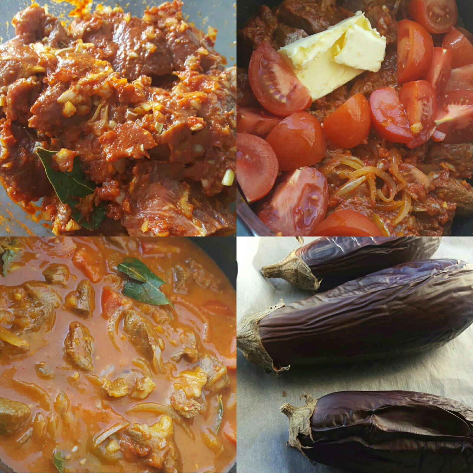 - Quand la viande à fini de mariner. Dans une cocotte faite revenir un oignon émincé dans de l’huile d’olive. Ajouter la viande avec sa marinade faire revenir rapidement puis ajouter 20gr de beurre et 3 tomates fraiche coupé en cartier. Saler,poivrer. Verser 2 verres d’eau. Laisser mijoter 1h.