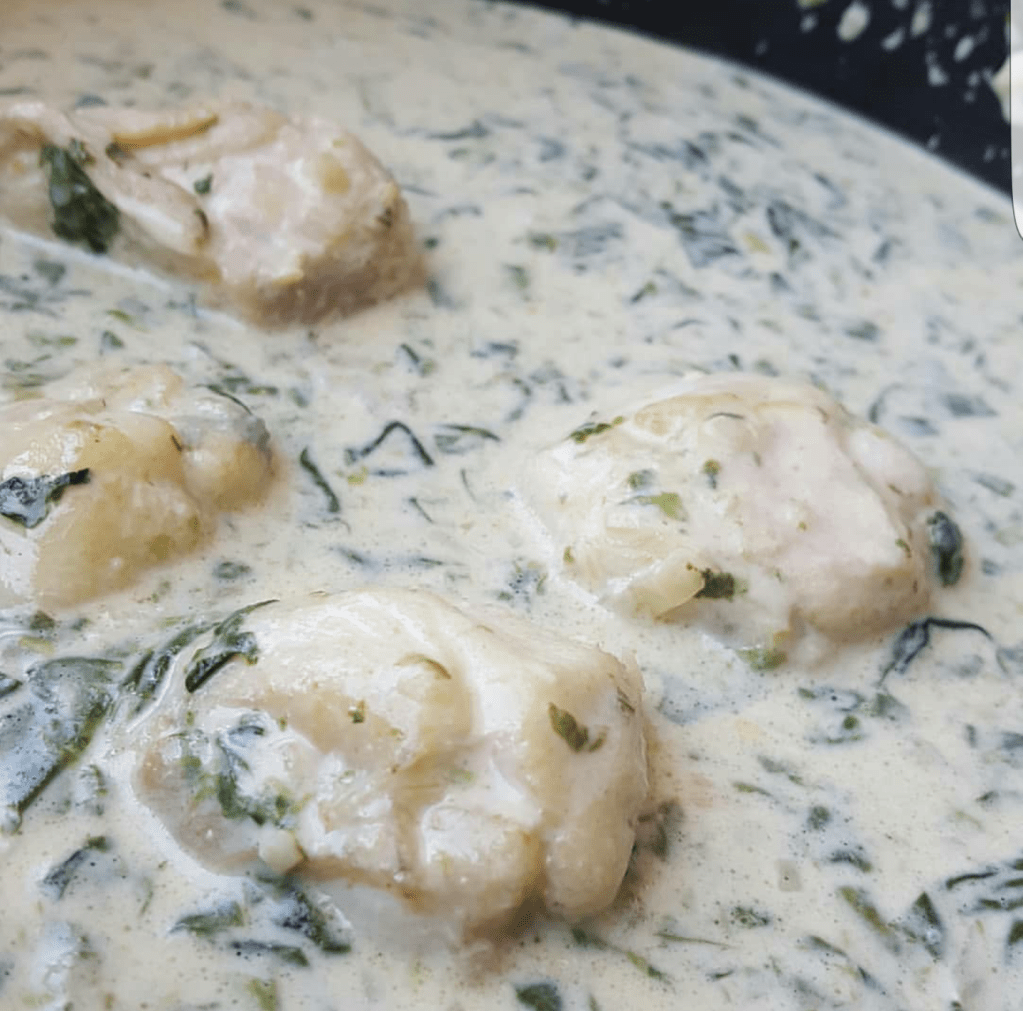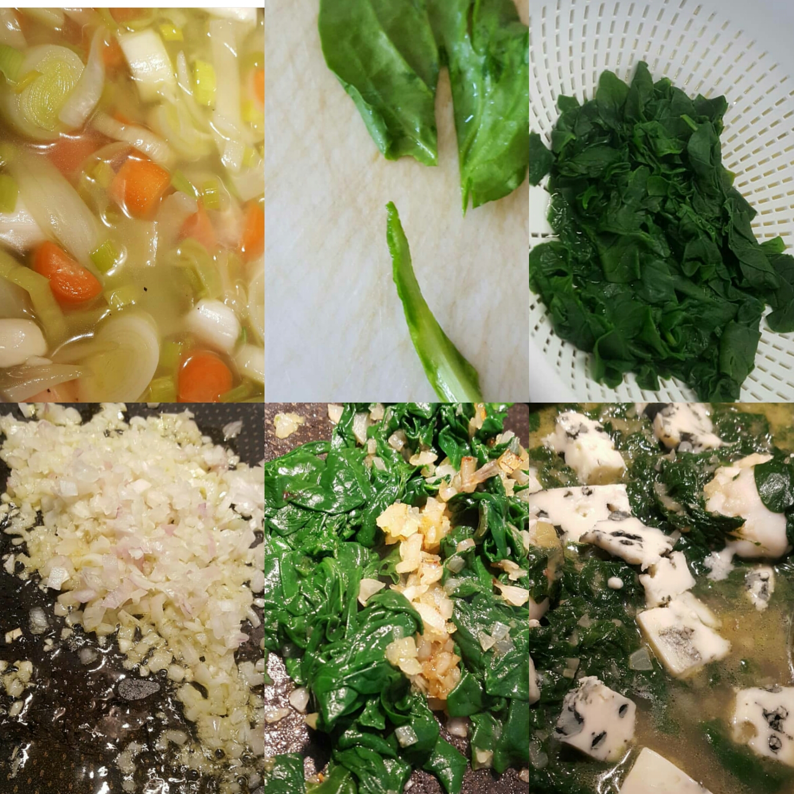 - Ajouter les épinards faîtes revenir jusqu’à évaporation de l’eau. Puis ajouter la lotte, colorer légerement. Verser le bouillon de legumes laisser reduire 5 min. Saler et bien poivrer.