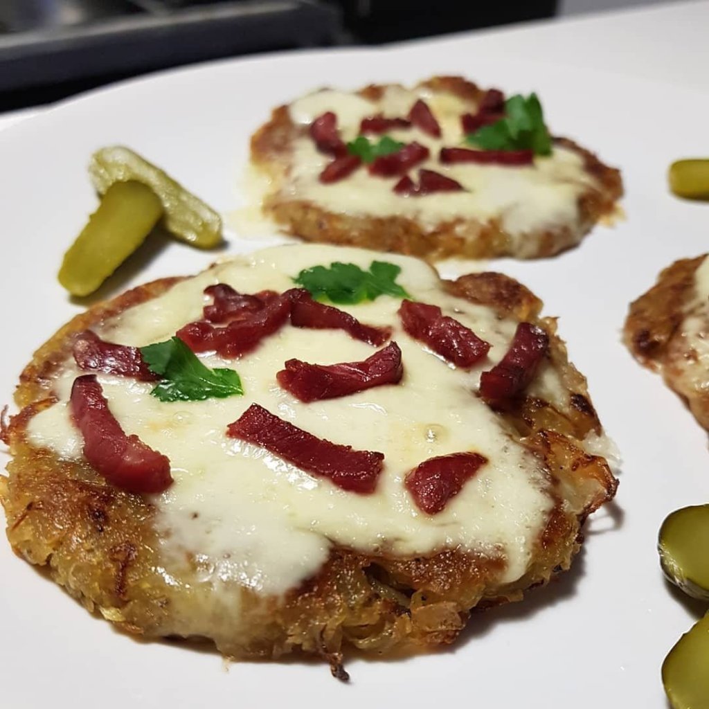 Des röstis croustillant à l’extérieur et fondant à l’intérieur ! Avec du reblochon fondu et des lardons grillé un régal bien gourmand ❤