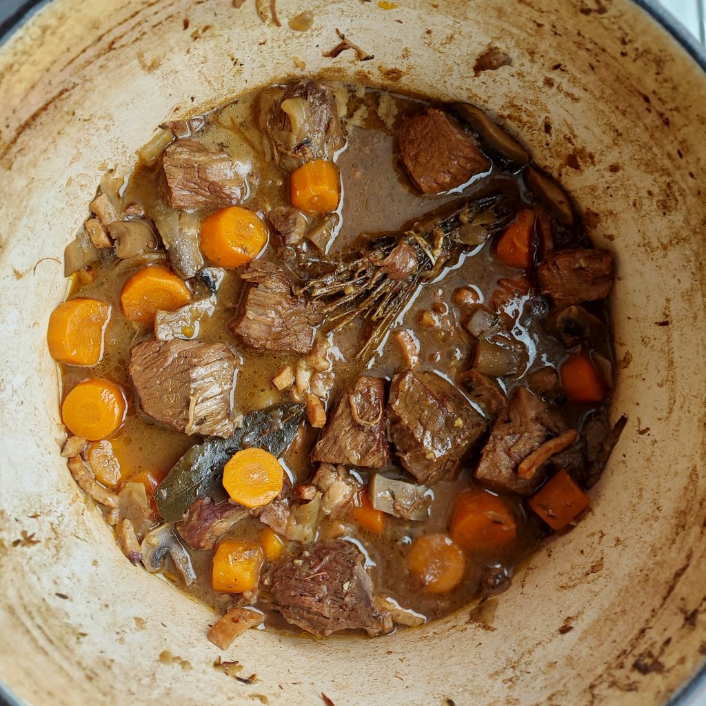 Revisite du Bœuf Bourguignon sans alcool et sans porc.