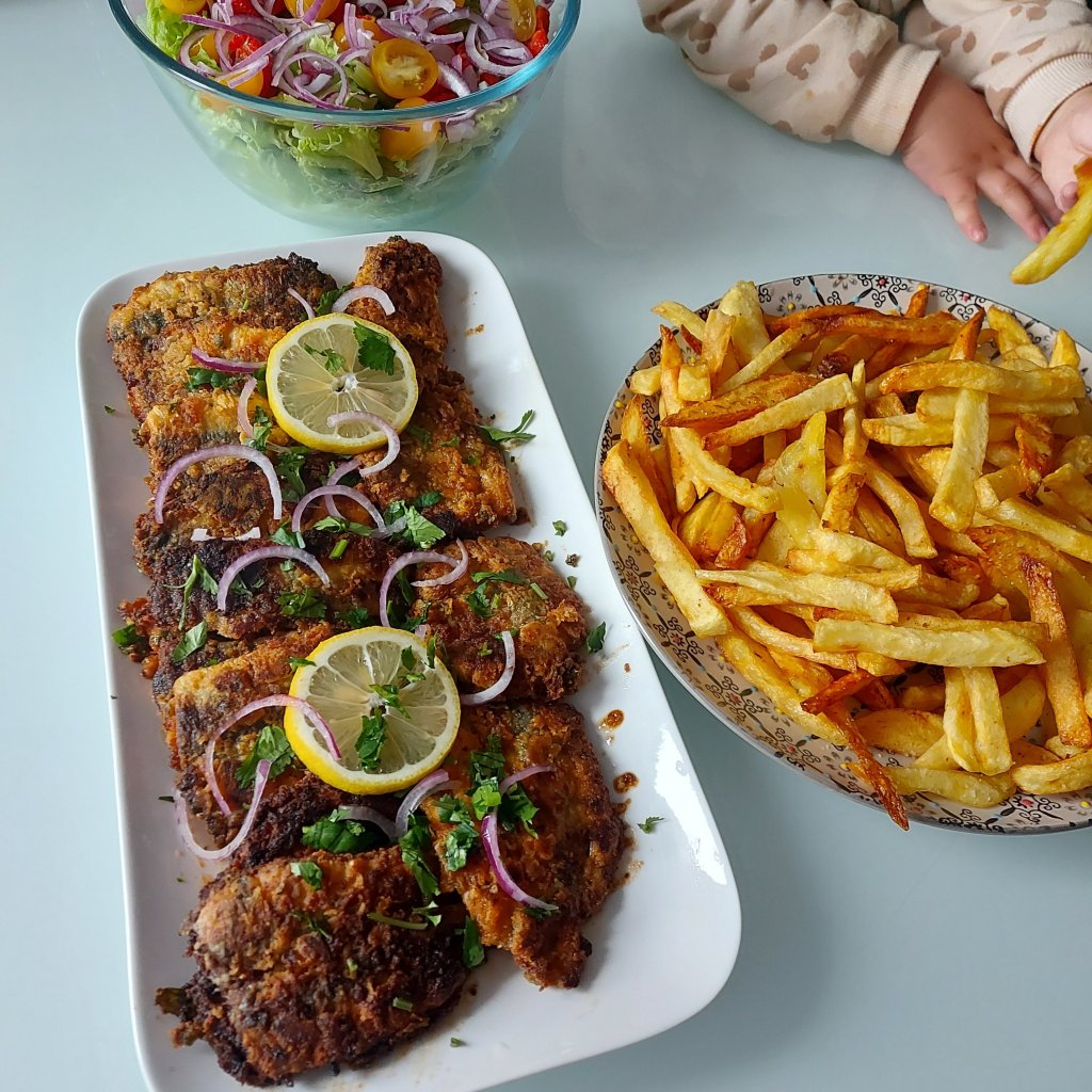 – Prendre une sardine la mettre à plat sur le dos, bien mettre de la marinade au milieu puis recouvrir d’une autre sardine. Les passer dans la farine puis faire frire.