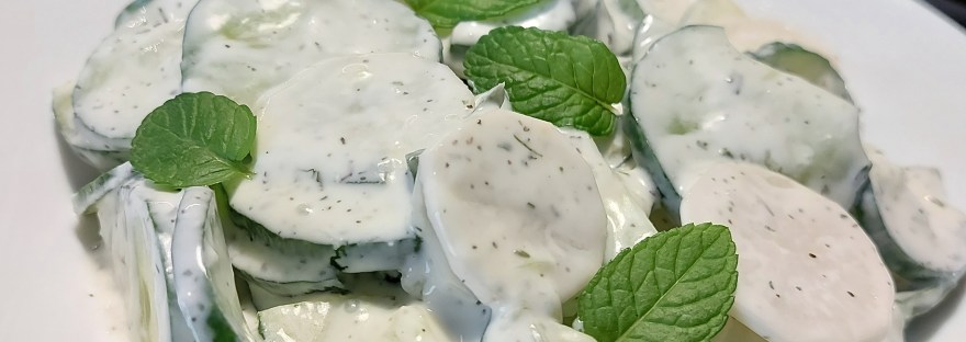 Salade de concombre et radis noir sauce yaourt à la menthe
